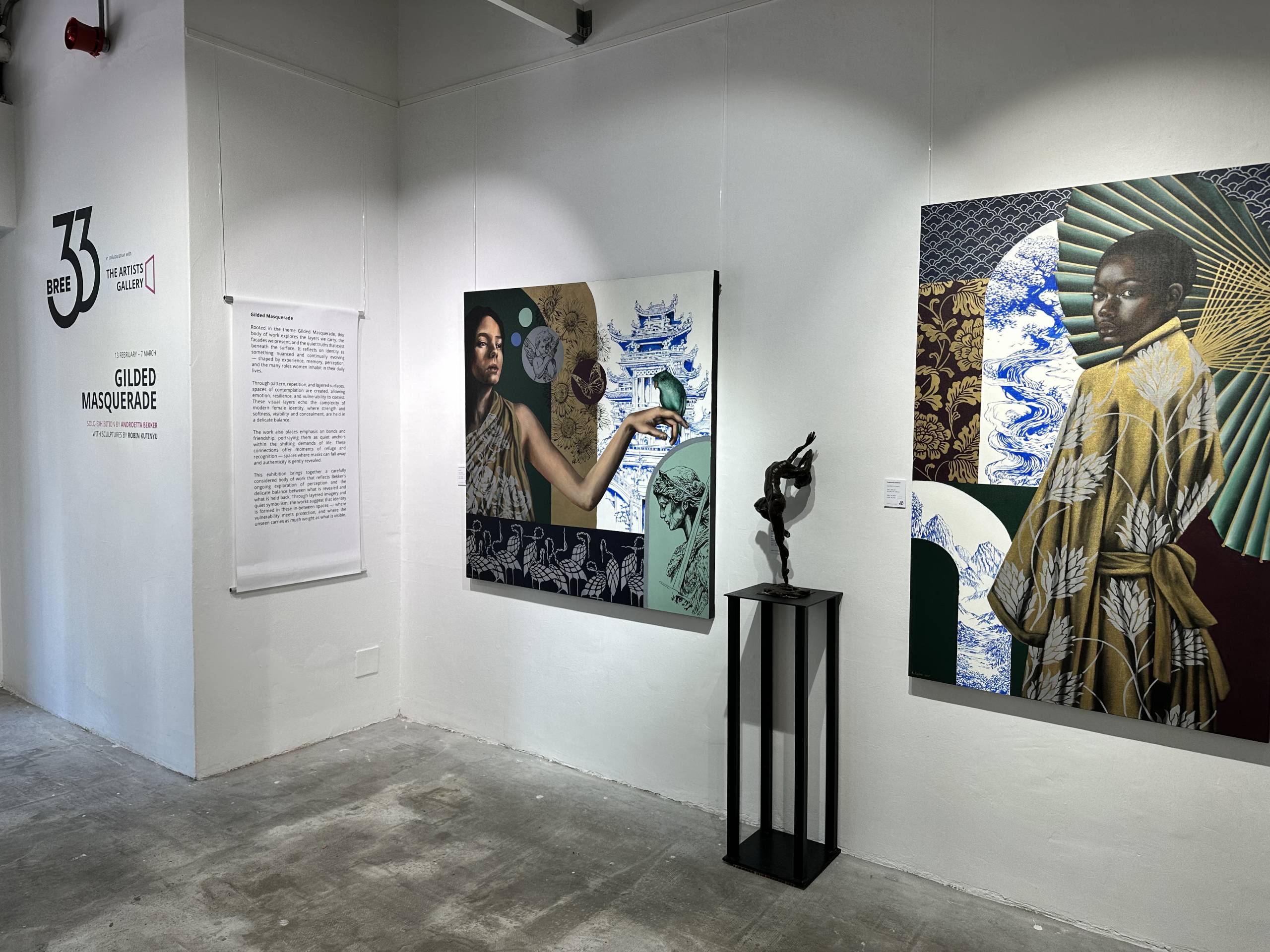 This solo exhibition brings together a carefully considered body of work that reflects Androetta Bekker’s ongoing exploration of perception and the delicate negotiation between what is revealed and what is held back. Gilded Masquerade ultimately invites viewers to reflect on their own layers — those that protect, those that conceal, and those that quietly define who we are.