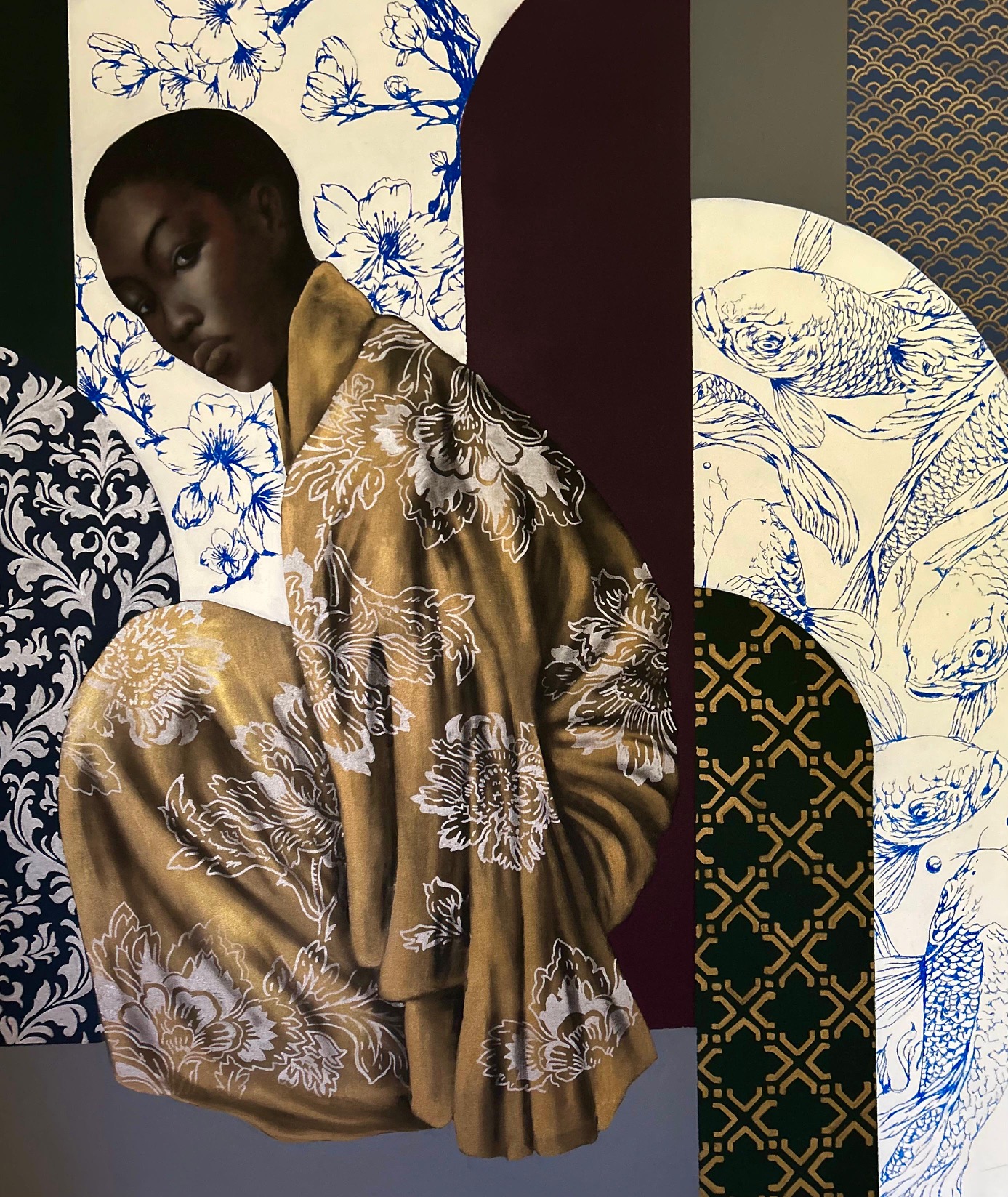 Now based in Cape Town, Androetta Bekker draws inspiration from the country’s vibrant cultural diversity. Her bold and colourful works are characterised by expressive illustration and striking surface patterns. While her visual language is eye-catching and dynamic, her true artistic obsession lies in exploring the depth and complexity of universal human emotions. Through her portraiture, she investigates how people rarely experience a single emotion in isolation—how sadness may be tinged with joyful nostalgia, or how pride may be shadowed by fear and anger. Her work captures these layered, often contradictory inner states with nuance and empathy.