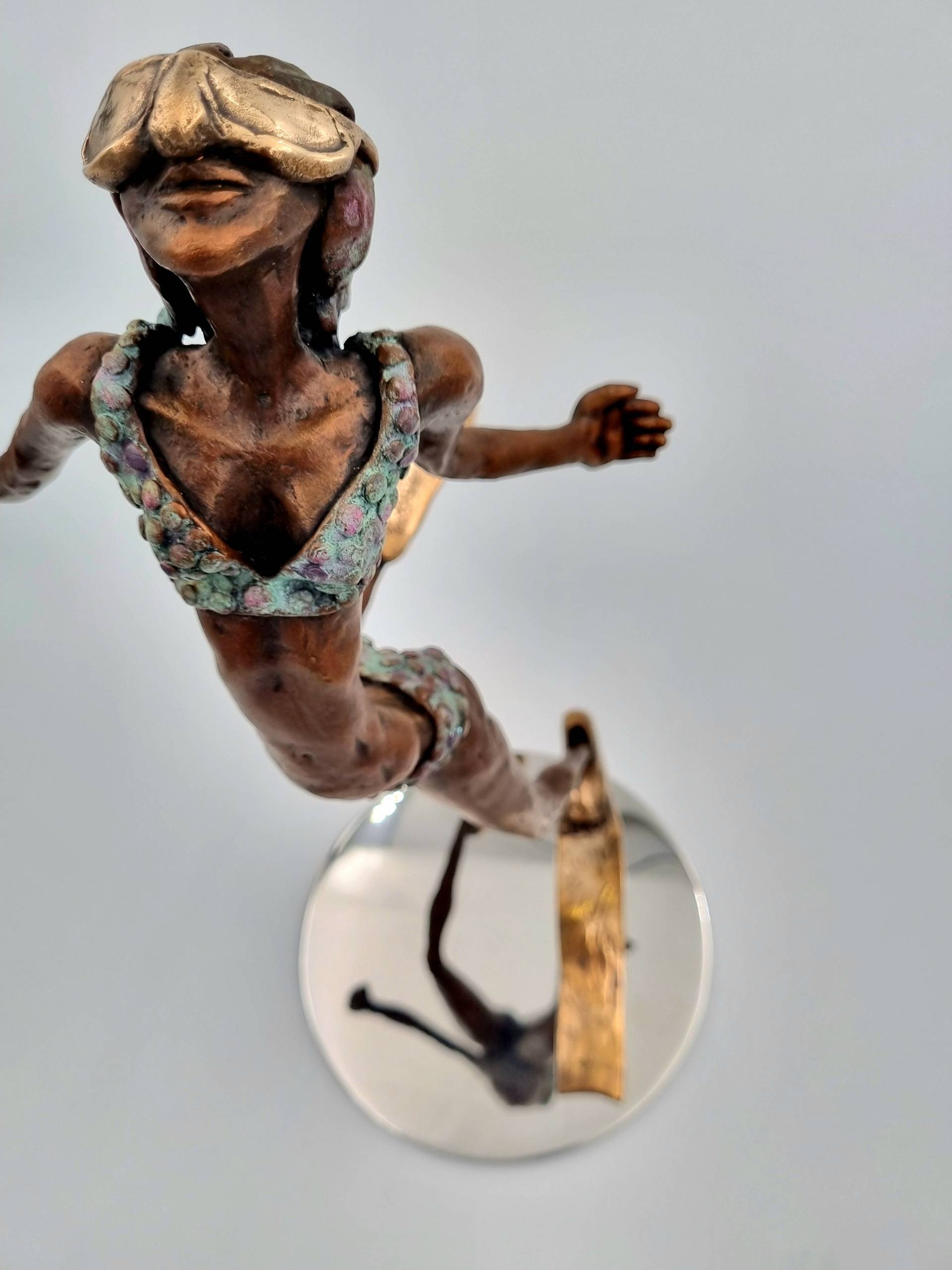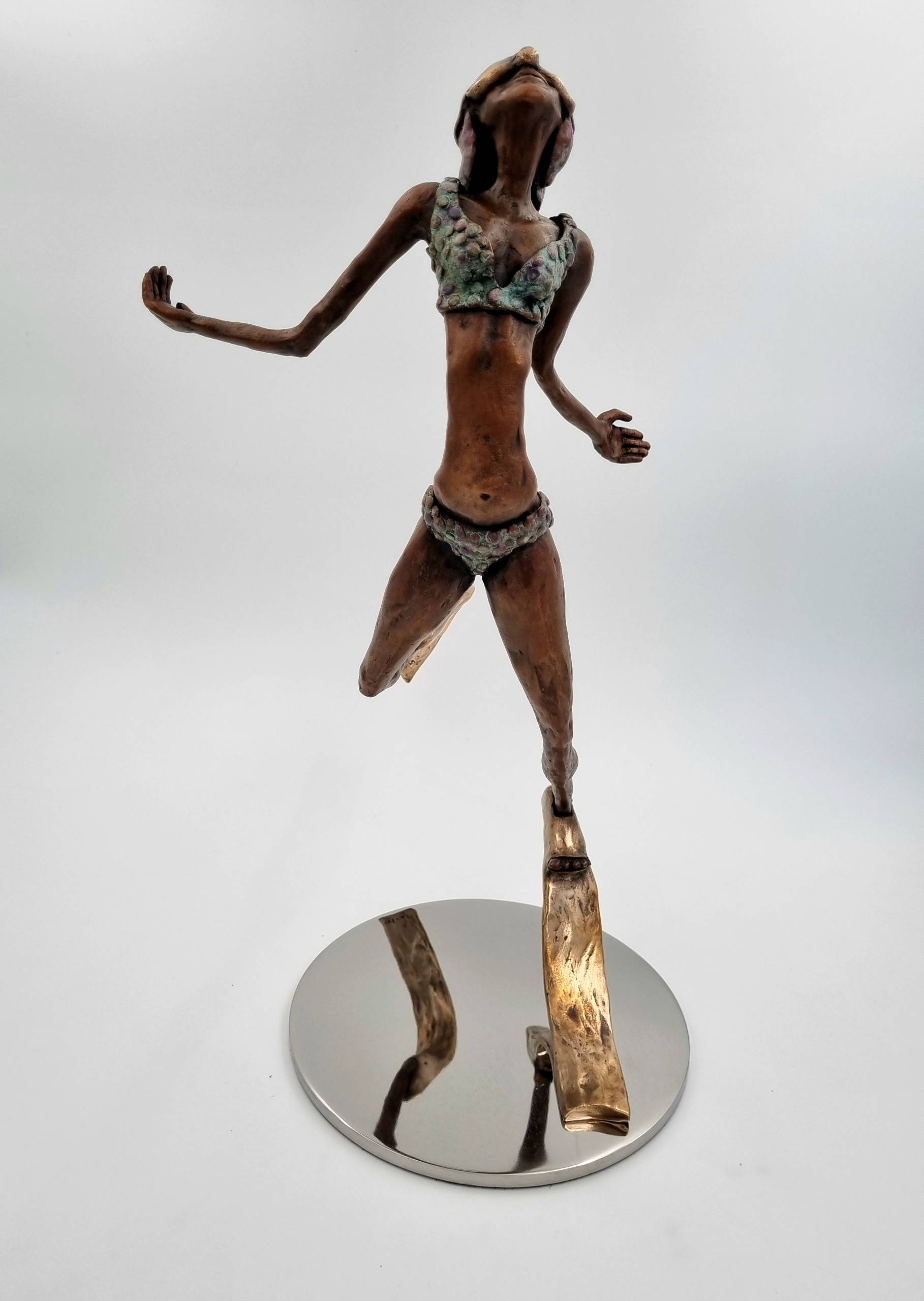 Using the ancient lost wax method for this piece connects the timelessness of the past with the present. This technique, involving heat, water, and air, mirrors the elements that inspire me most. For me, art doesn’t just reflect reality—it challenges it. My sculpture invites viewers into a world that’s more vibrant, profound, and filled with endless possibilities, offering hope and renewal, much like the sea itself.”