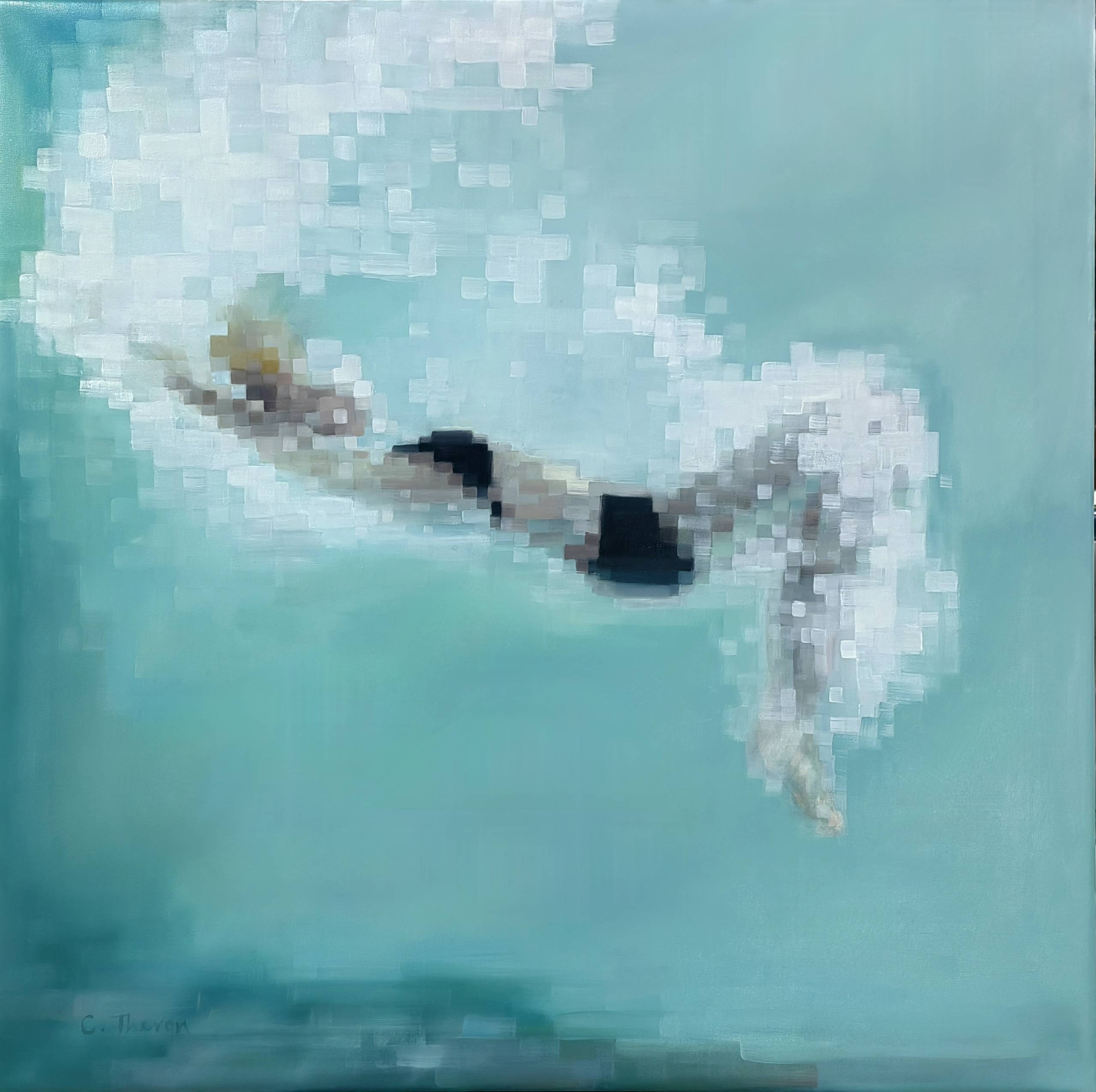 The exhibition explores water as a primary metaphor for the subconscious. By depicting women submerged or emerging from fluid environments, Theron examines the “perpetual blur” of our inner memories and the fragile surface tension between our digital and natural worlds.