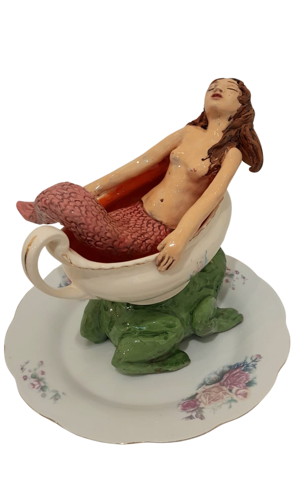 Inspired by the nuances of daily life, her work combines quiet contemplation with humour and nostalgia. She often draws from fairy tales, religious imagery, and mythical themes, blending them into compositions that echo traditional European porcelain figurines—with a distinctly hand-crafted, African twist. This fusion results in art that is both familiar and fantastical, inviting viewers into a layered world of emotion and interpretation.