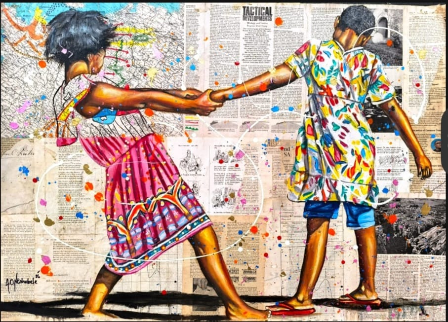 Andrew’s works investigate the social predicament of the city to understand the root causes of the current inner-city decay. “My work is a social commentary on the socio-economic challenges that the majority of Black South Africans face in post-colonial South Africa. “My paintings incorporate more than one medium, they are a fusion of collage and acrylic paint, that are produced from photographs I take on my daily travels around the inner city and its outskirts” the artist says.