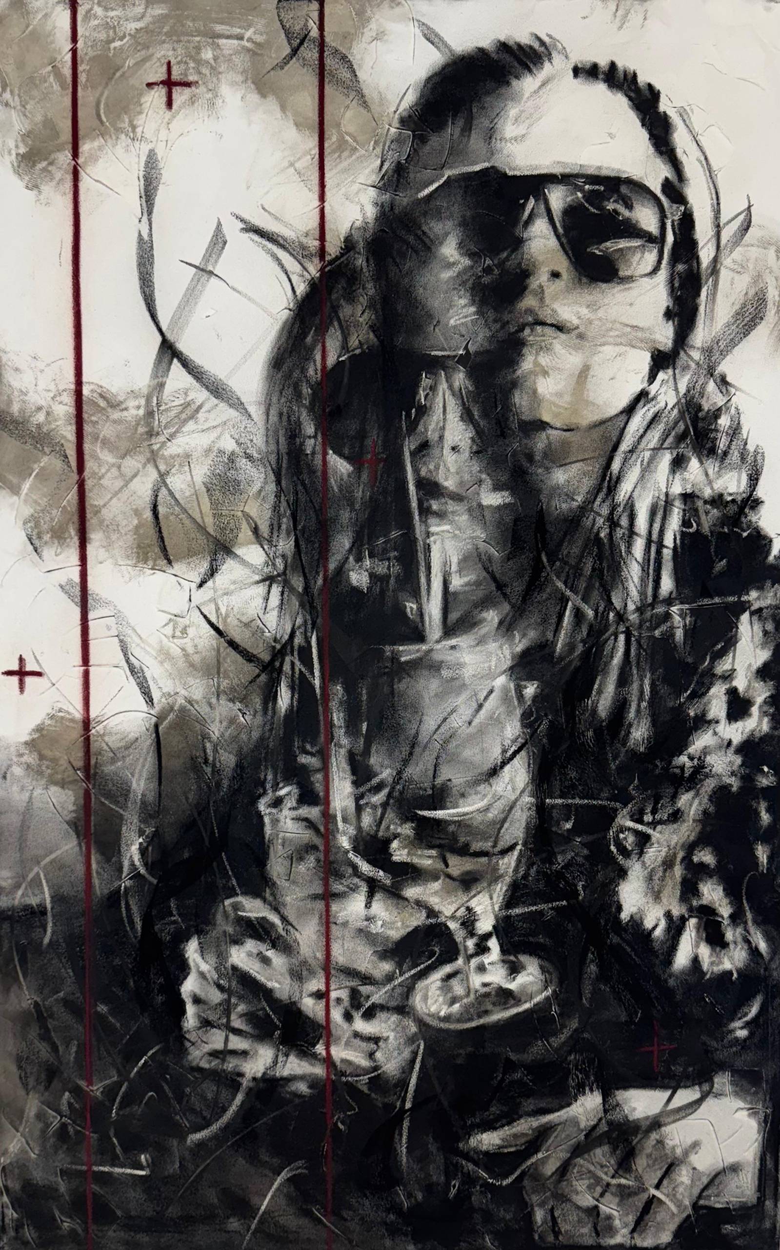 “The faster we move, the less we see the details. We are missing the basics,” says Riaan van Zyl. This philosophy lies at the heart of his artistic approach. Van Zyl hurls and pours old car oil, effectively slowing down time and capturing it through a mix of charcoal and paint on various surfaces. His static images seem to vibrate with movement, inviting viewers to pause and absorb the intricacies within.