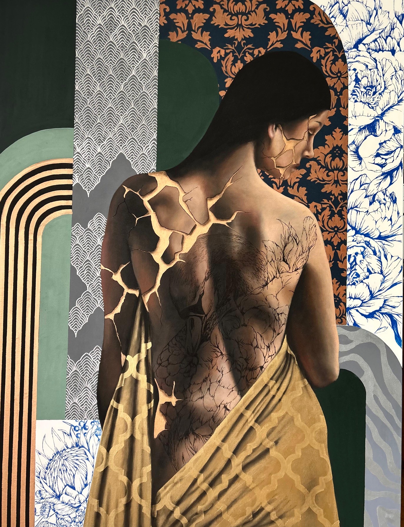 In this work, strength is not found in remaining broken,but in returning altered and unyielding, carrying both the weight of what was endured and the grace of what has been reclaimed.“
